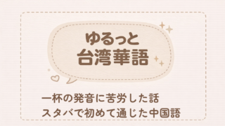 台湾華語の「一杯」の発音に苦労した体験と、スタバで初めて中国語が通じたときの話。レッスンで練習した会話がそのまま通じた瞬間を書いています。
